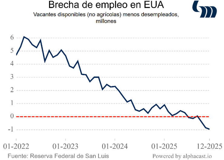 La tasa de desempleo en EUA se reduce a 4.3% de la fuerza laboral en enero (vs 4.4% anterior). Los sectores que aumentan empleos son servicios de salud, construcción y servicio social; los que pierden, gobierno federal y actividades financieras. Al mismo tiempo, la nómina no agrícola aumenta 130 mil puestos en el mismo periodo (vs E: 70 mil). Estos datos, junto con las revisiones a los correspondientes al 2025, sugieren que el mercado de trabajo estuvo más débil, pero que está mejorando. Ello implica una Fed que puede esperar un poco más en el frente de tasas, lo que a su vez impacta los mercados cambiarios. En términos fundamentales, el balance oferta-demanda en el mercado laboral muestra menos lasitud; estimamos una brecha de empleo (vacantes disponibles no agrícolas menos desempleados) de -960 mil personas en diciembre, que suma así dos meses consecutivos con más gente buscando empleo que oferta de los mismos.