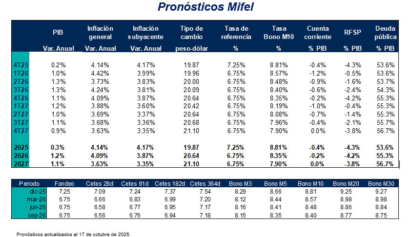 FE DE ERRATAS: en el semanal 0071 “La palabra de la semana es Paz”, reportamos erróneamente un incremento en nuestros estimados de crecimiento de PIB para 2025 de 0.9%. Reiteramos nuestra previsión de 0.3% en 2025 para este indicador y, pese a que la omisión se ha solventado en la publicación final, lamentamos los inconvenientes que este hecho pudiera ocasionar.