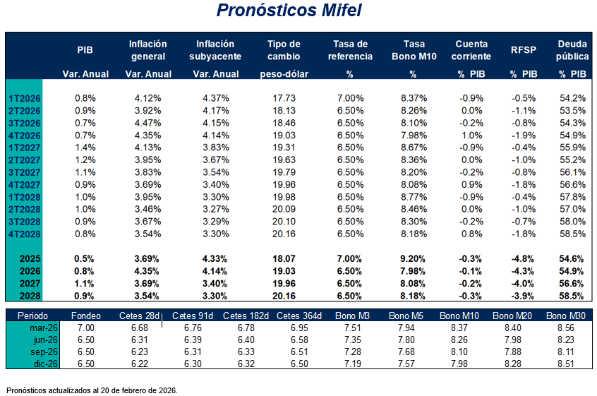 Banca Mifel, ni las demás entidades integrantes de Grupo Financiero Mifel, S.A. de C.V. son responsables por cualquier tipo de pérdida directa o emergente que derive de la utilización de la información del presente documento, pues se reitera que su propósito es meramente informativo. La información y estimaciones que se incluyen en este documento son vigentes a la fecha de su emisión, no obstante, están sujetas a modificaciones sin previo aviso. Banca Mifel no tiene responsabilidad alguna en comunicar los cambios ni a mantener actualizado el documento.